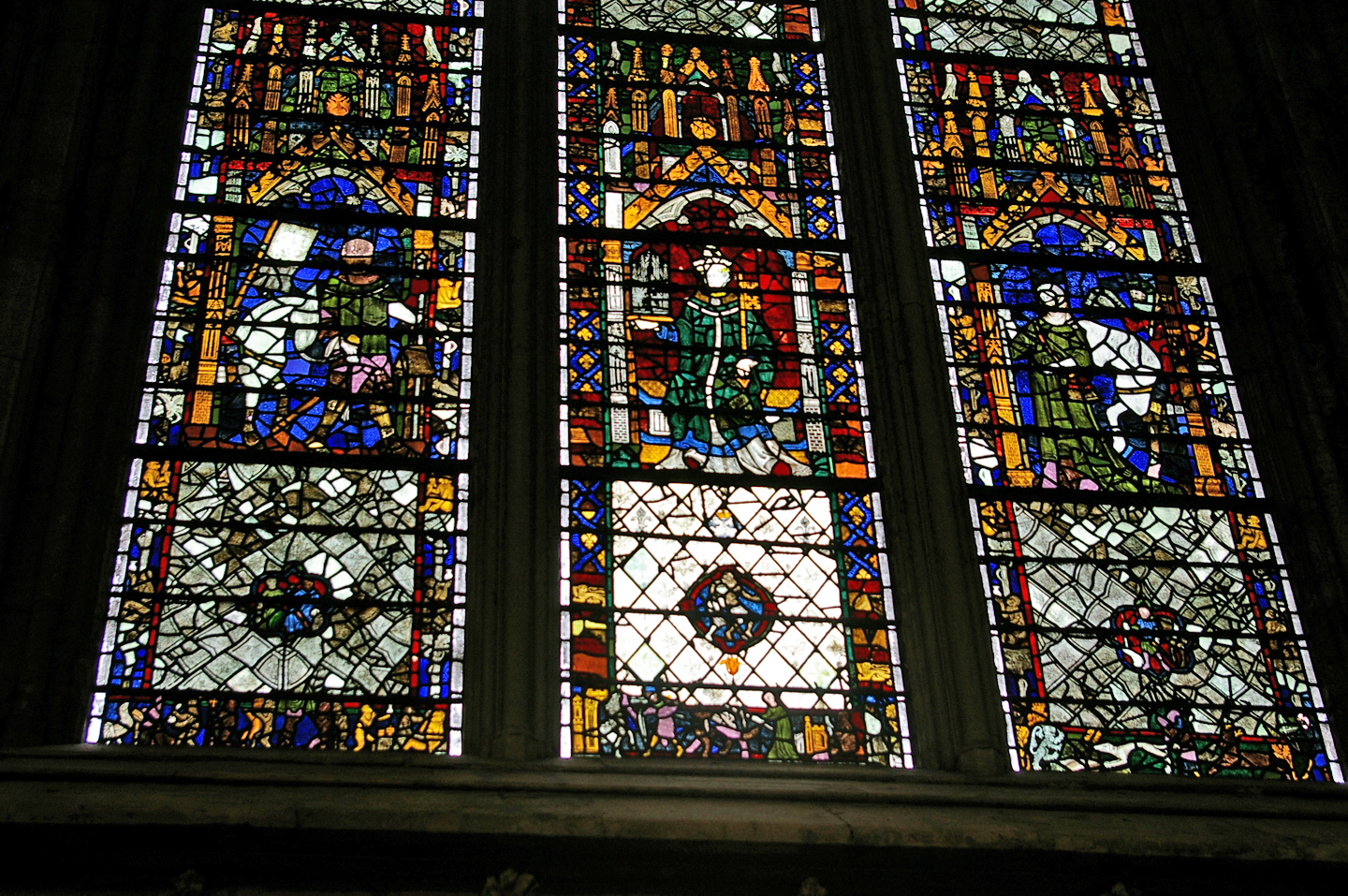 At the top of this page, you will see one of my favorite stained glass windows: the Pilgrimage Window from York Minster Cathedral.